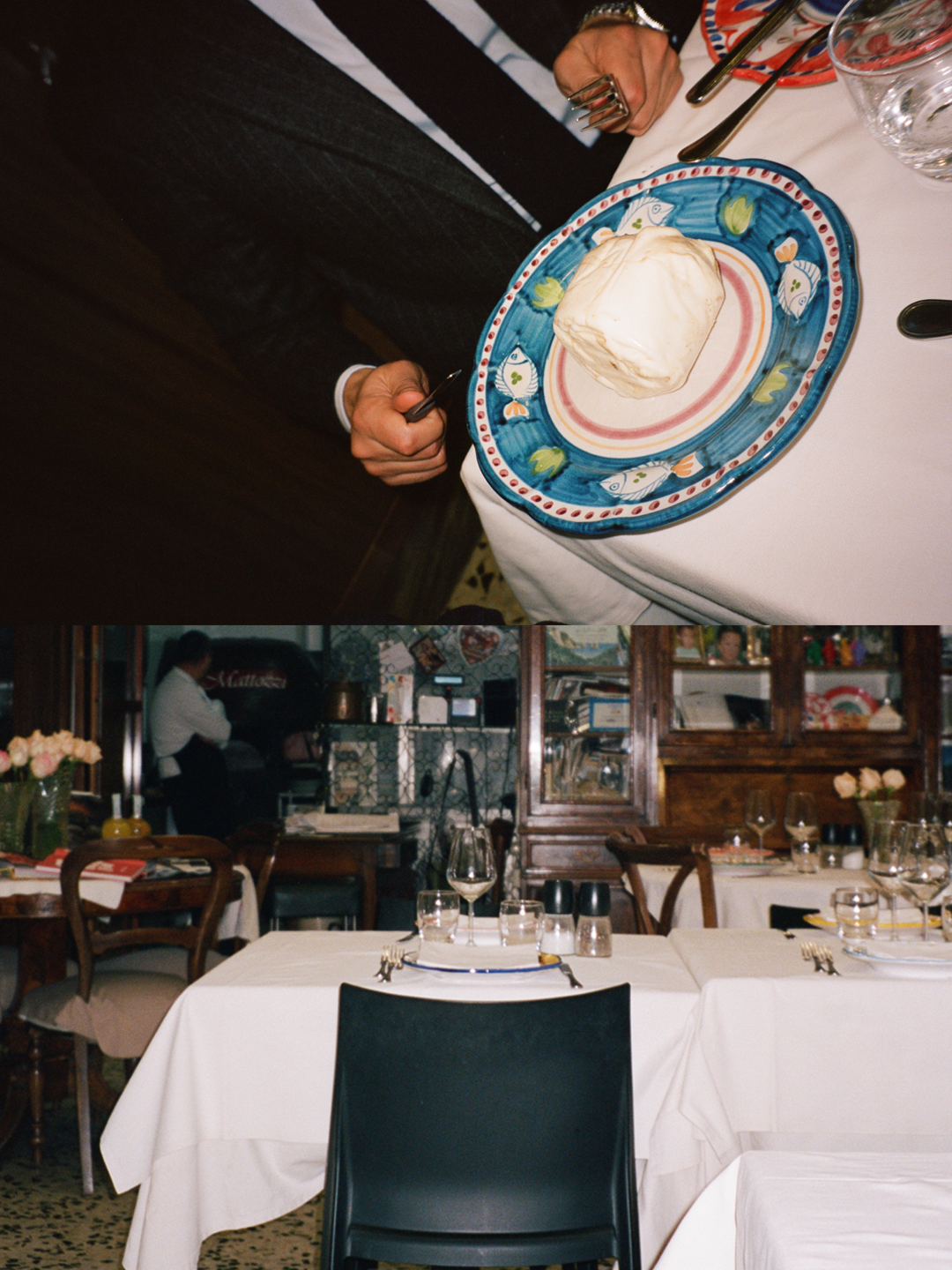 Another important pillar of the trip was dubbed the 'Caravaggio Crawl', a tour of the artist's final works made before his untimely death. Visiting the Museo di Capodimonte, Gallerie d'Italia and the Pio Monte della Misericordia within a day was a sublime experience, neatly wrapped up with a dinner at Sottocoperta Taverna di Mare for some of the best seafood in the city. The next day we visited our good friend Luca Avitabile, followed by a quick tour of fabric merchants, tie-makers, and tailors, before heading to our trouser workshop, to catch up and check in on the upcoming season. Ending the trip with lunch at Ristorante Europeo Mattozzi, my favourite restaurant in Naples and the backdrop to so many happy memories.